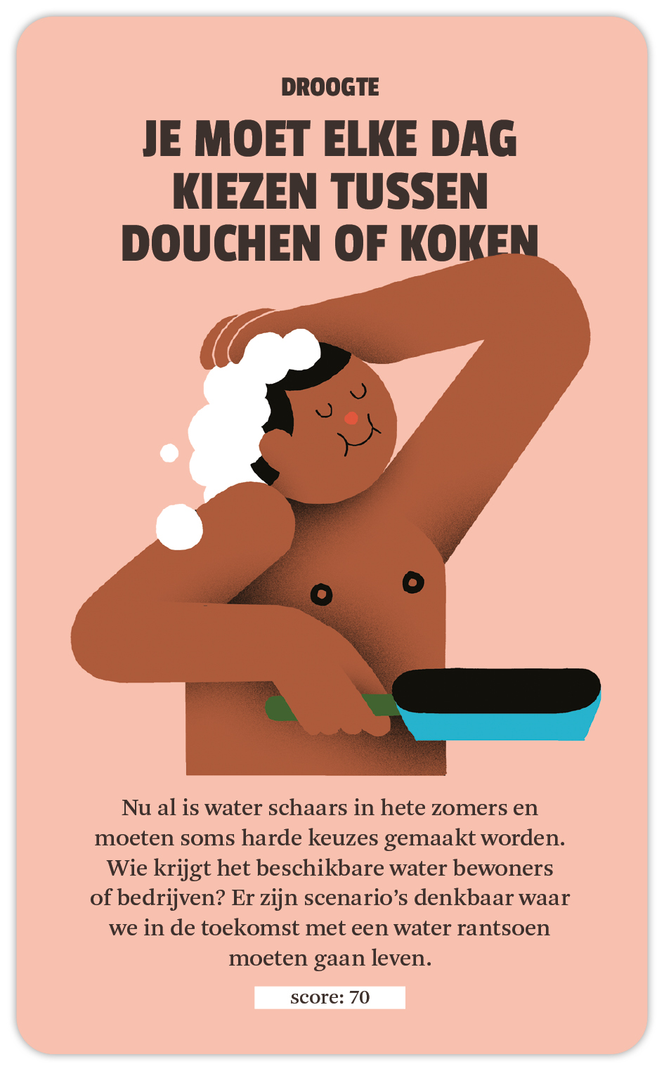 Terwijl je speelt, ontdek je wat klimaatverandering betekent voor de stad én voor jou. En dankzij de Rotterdamse score, bepaald door 100 Rotterdammers, zie je meteen hoe jouw inschatting zich verhoudt tot die van de ‘gemiddelde’ Rotterdammer. Hoe groot denk jij dat de impact is op jouw leven? En wat vindt de rest van de stad? Het spel laat het je direct ervaren.